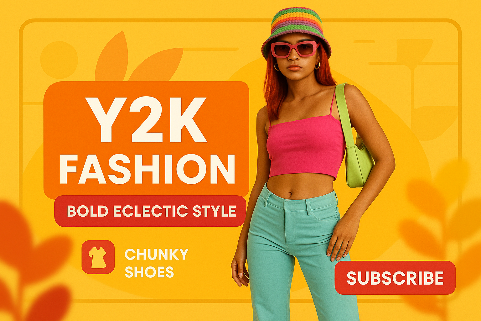 Stylish social media post showcasing Y2K fashion trends with bold colors and playful design elements, perfect for fashion enthusiasts and influencers.