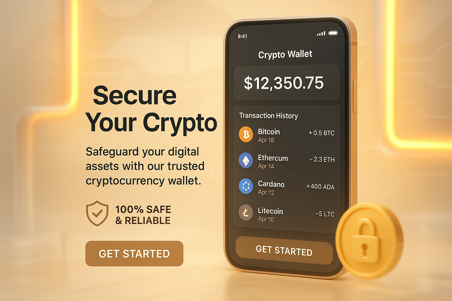 Cryptocurrency Wallet Promotional Graphic with Modern Design