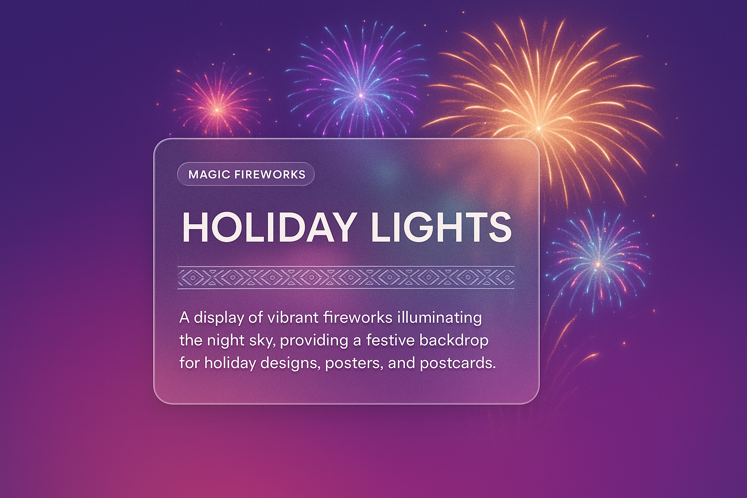 A stunning display of colorful fireworks lighting up the night sky, perfect for holiday designs, including posters and postcards. Features a festive backdrop.