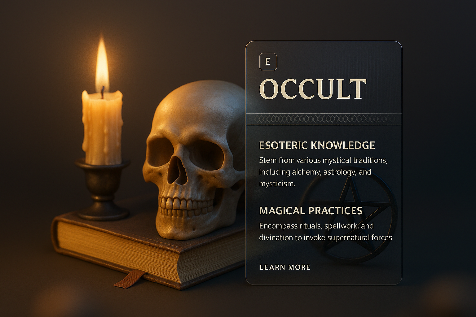 /Collection: /by davooda/Type: PNG/A captivating 3D illustration featuring a skull, candle, and book, displaying themes of esoteric knowledge. The design integrates dark textures and subtle gradients, enhancing the mystical atmosphere.