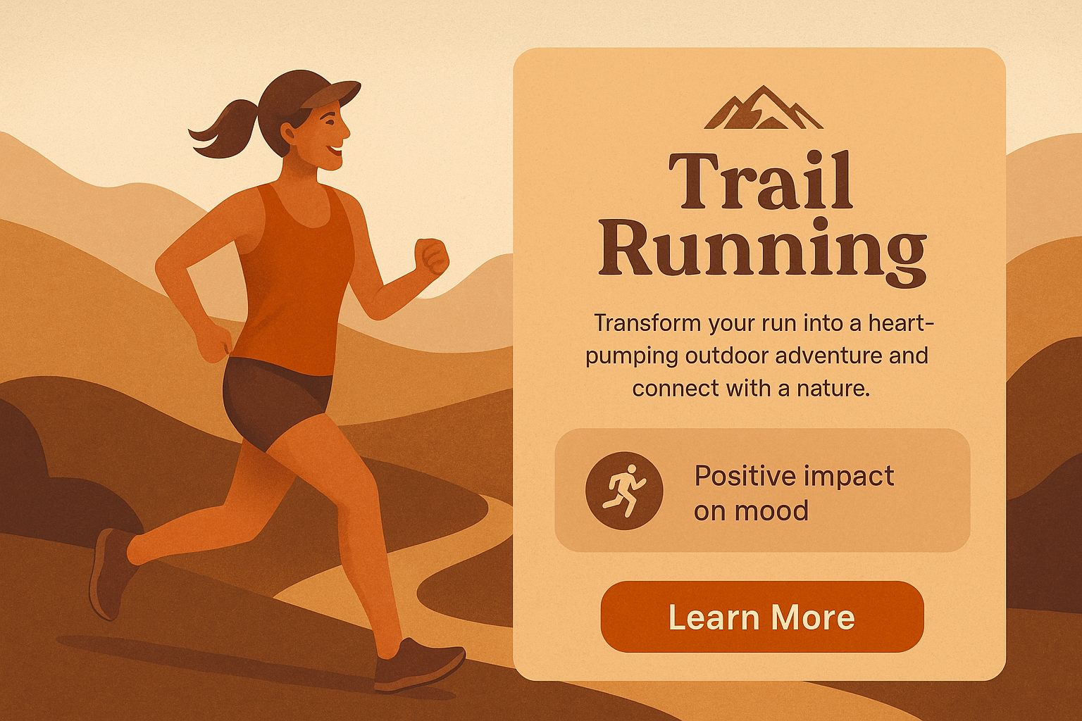 Dynamic Trail Running Advertisement Featuring Energetic Woman