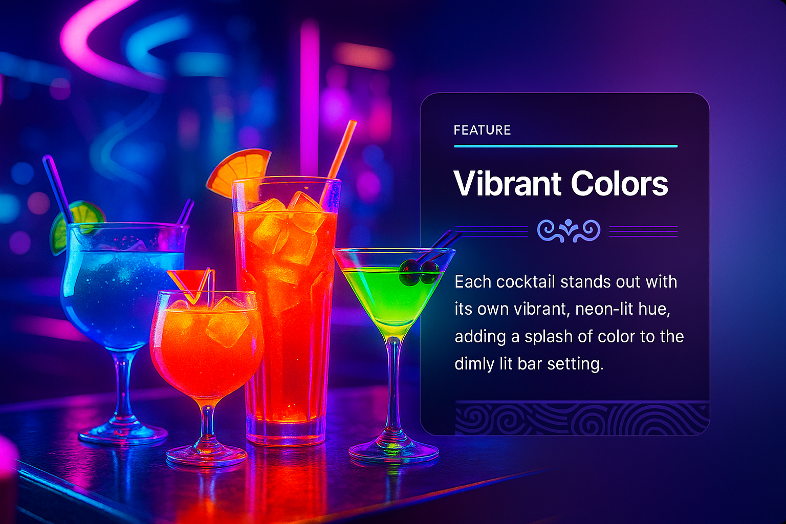 Vibrant Neon Cocktails Graphic for Cyberpunk Theme