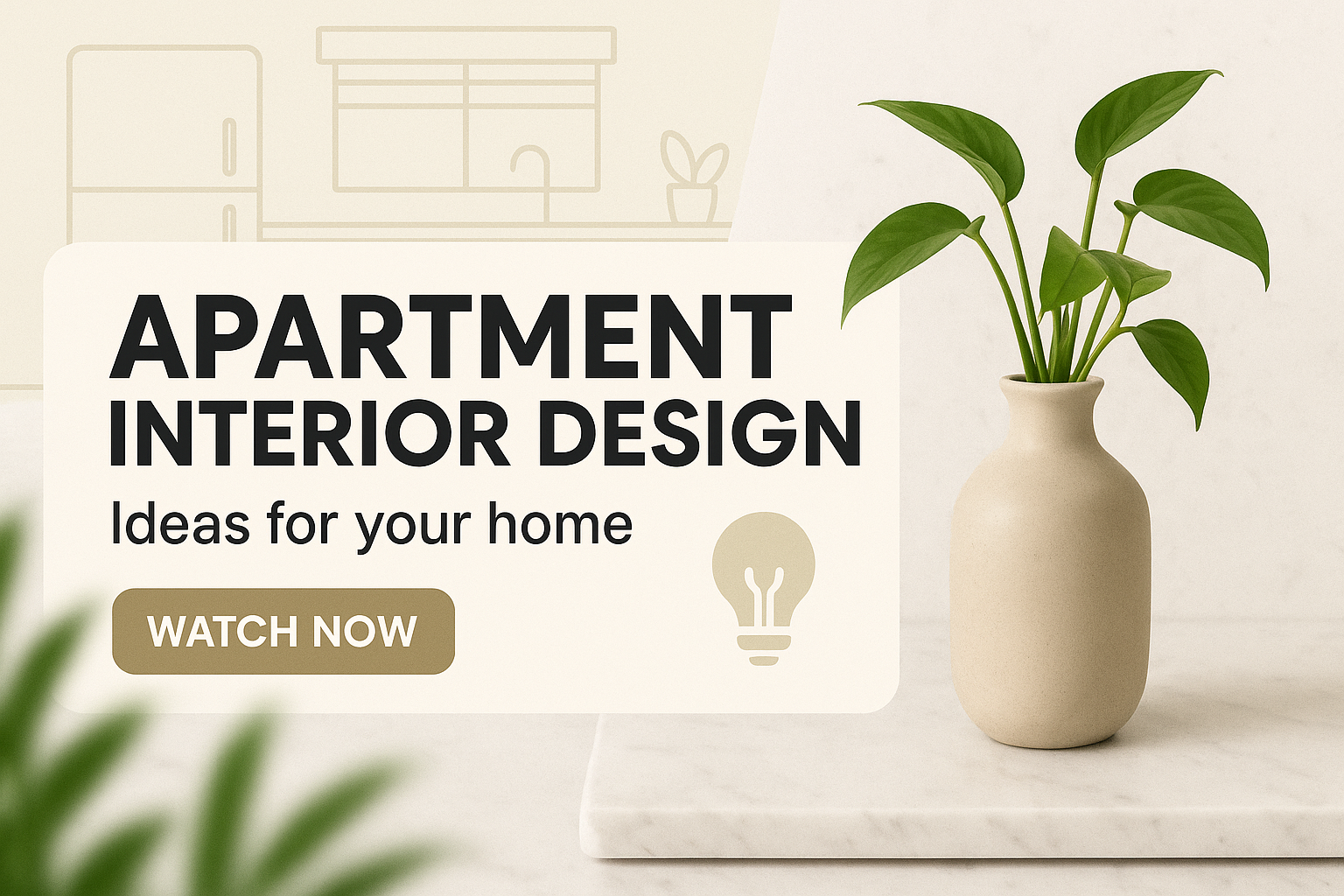 Stylish promotional graphic featuring a vase with a plant, emphasizing apartment interior design ideas. Perfect for home decor inspiration and online content.