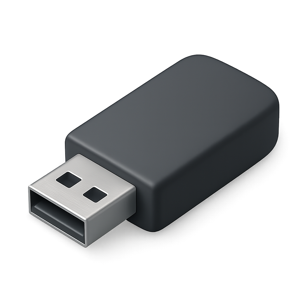 /Collection: /by davooda/Type: PNG/A sleek 3D USB drive icon depicted in a three-quarter view, showcasing a modern design with a metallic finish and a smooth surface. The background is transparent, emphasizing the volumetric aspect.