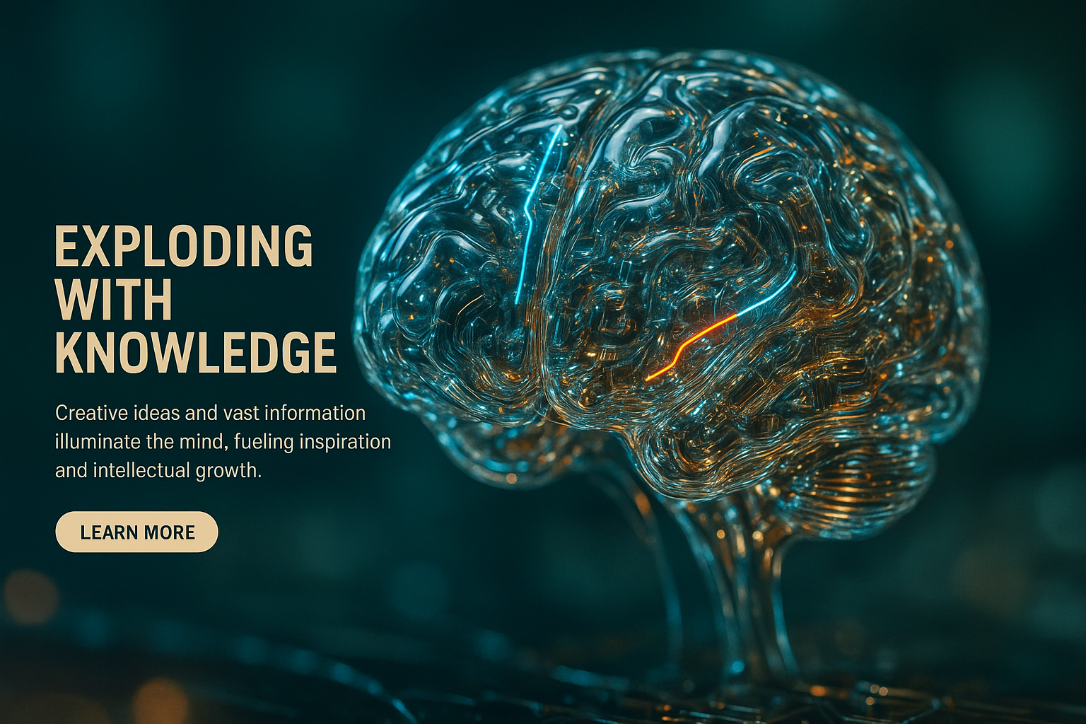 /Collection: /by davooda/Type: PNG/This artwork features a hyperrealistic human brain exploding with vibrant knowledge. The intricate internal components glow, showcasing a blend of technology and creativity, surrounded by a soft, neon-lit ambiance.