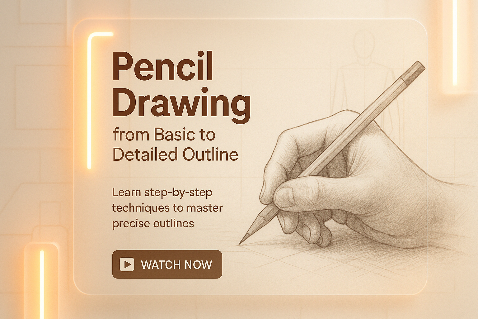 Engaging promotional image for a pencil drawing tutorial, featuring a hand sketching an outline with a pencil. Ideal for art education content.
