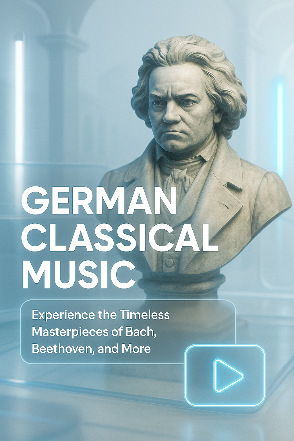 /Collection: /by davooda/Type: PNG/Visually striking promotional image showcasing a bust of a classical composer, ideal for marketing a music experience. The modern design and soft lighting create an engaging atmosphere.