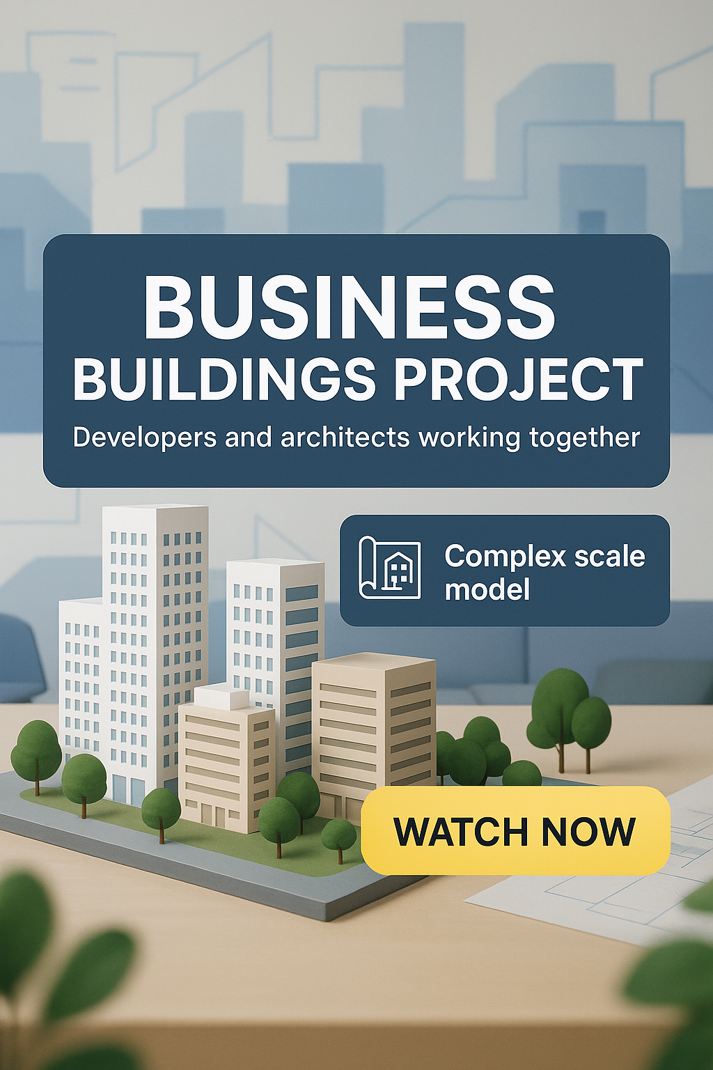 Promotional Graphic for Business Buildings Project Featuring Scale Model