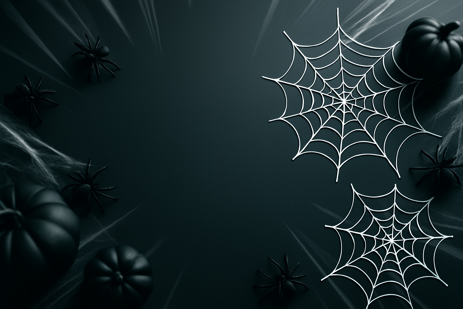 Dynamic Halloween Flat Lay with Spiders and Webs
