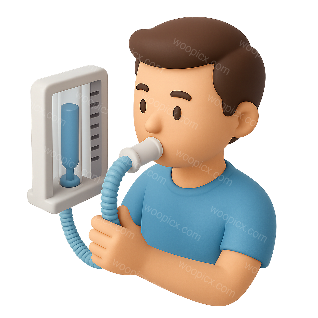 /Premium/Collection: /by davooda/Type: PNG/A colorful 3D icon depicting a person using a spirometer for a breathing test. The figure is shown in a three-quarter view, enhancing its volumetric appearance.
