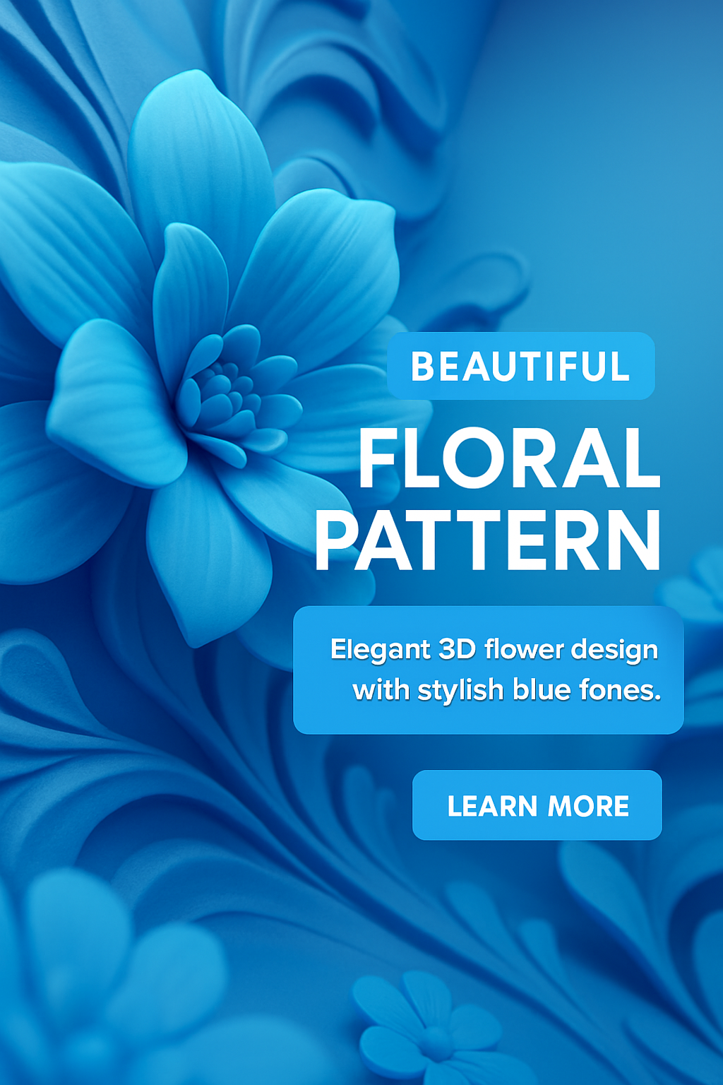 A visually striking graphic featuring an elegant 3D floral pattern in shades of blue, suitable for digital marketing or product design.