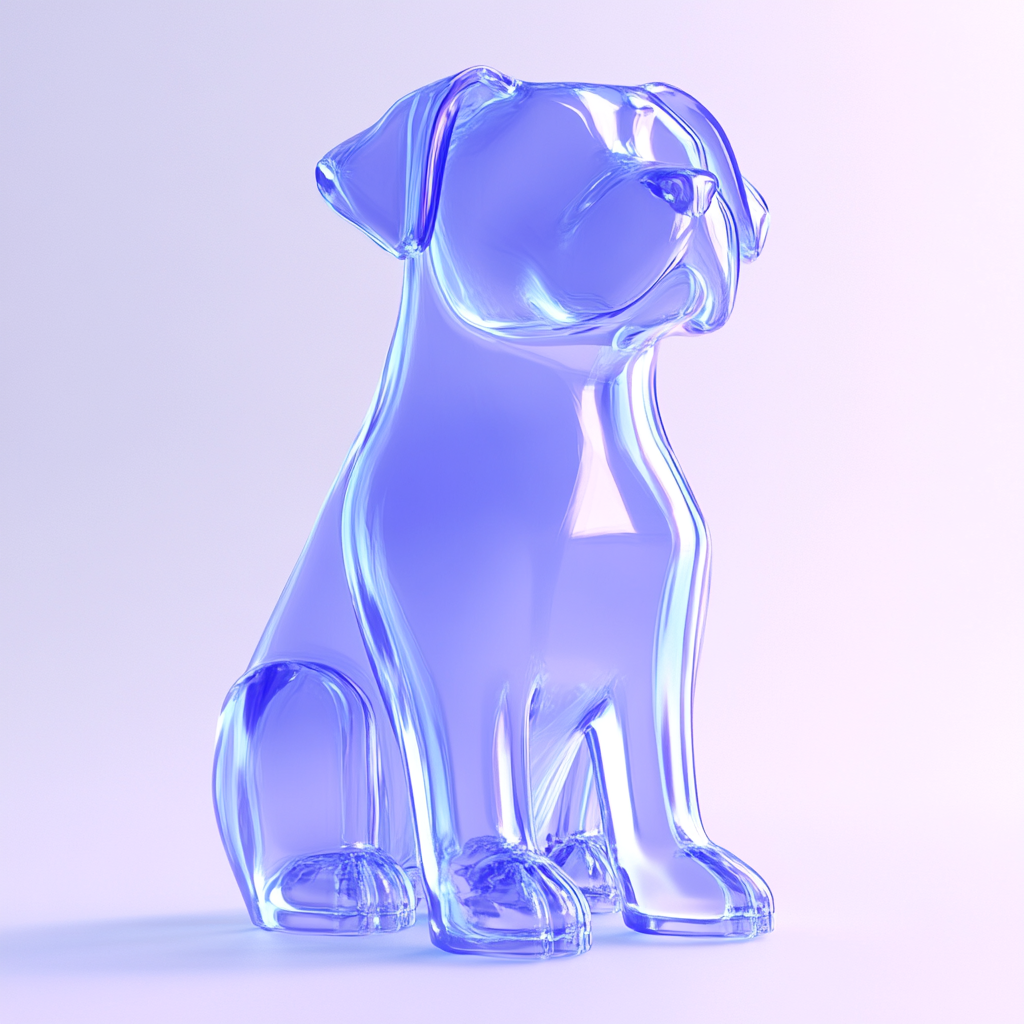 A modern and artistic representation of a dog in a translucent glass style, featuring soft blue tones. Ideal for home decor or pet-themed art displays.