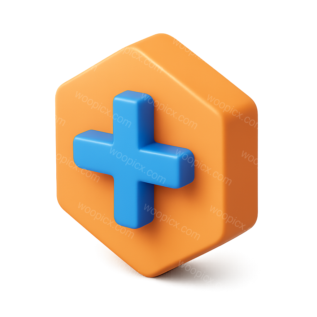3D Geometric Hexagonal Icon with Plus Sign