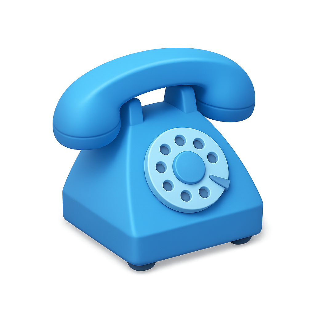 /Collection: /by davooda/Type: PNG/A visually appealing 3D icon of a retro telephone in blue, designed with a three-quarter view and a smooth, volumetric finish. The icon features a rounded handset and a classic rotary dial, all set against a subtle gray background.
