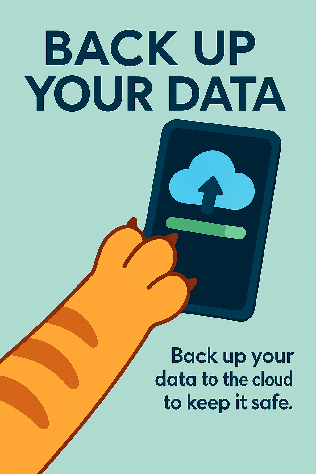 Digital Data Backup Awareness Graphic Featuring Cat Illustration