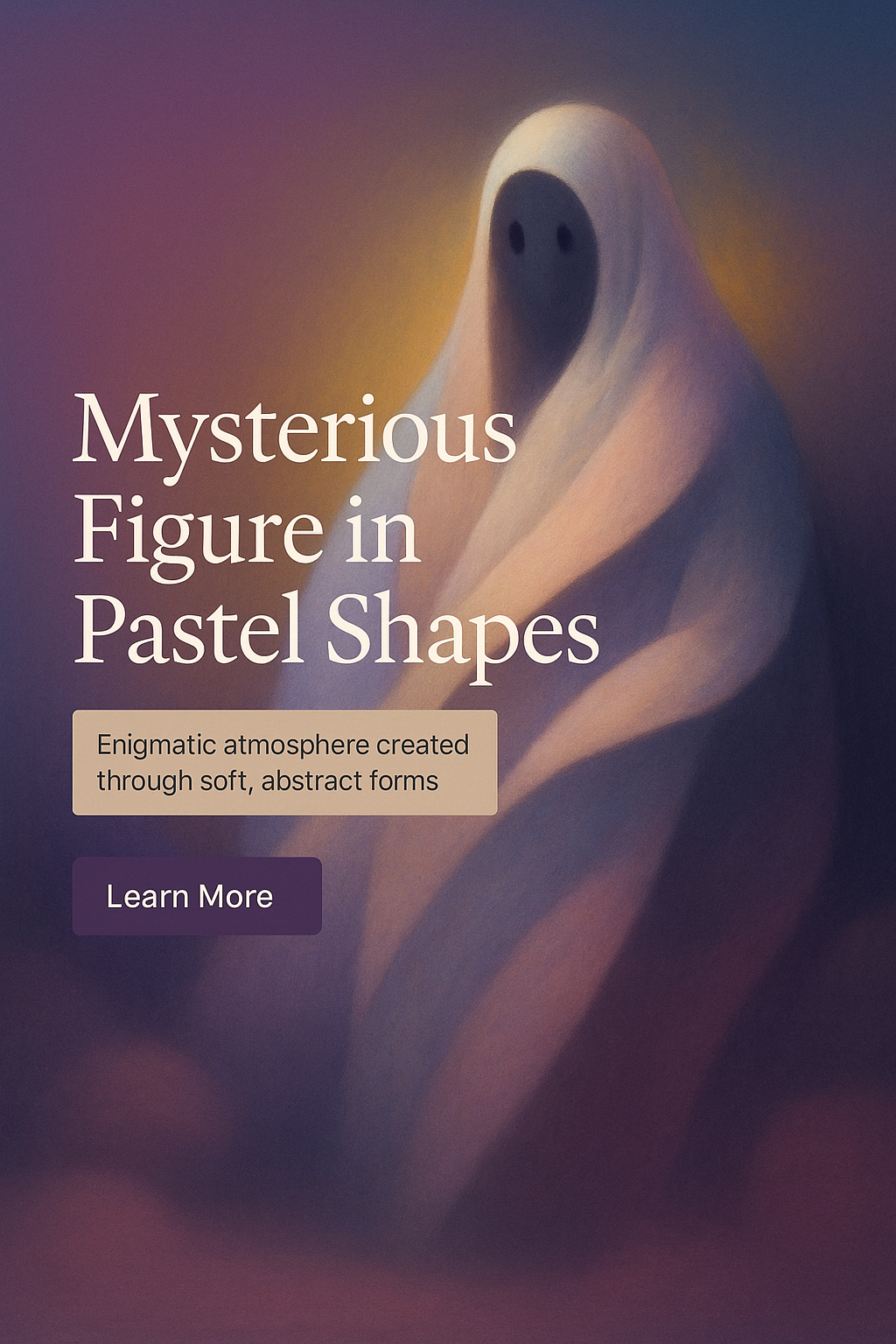 This image features an abstract representation of a mysterious figure enveloped in soft, pastel shapes, creating an enigmatic atmosphere. It's suitable for digital art showcases or promotional content.