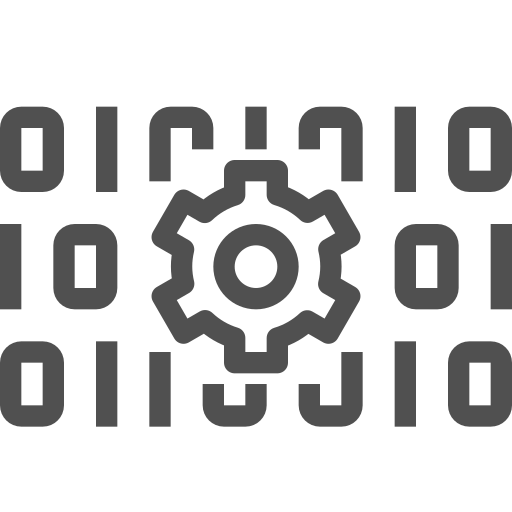outline simple icon: binary, cogwheel, computing, configuration, data processing