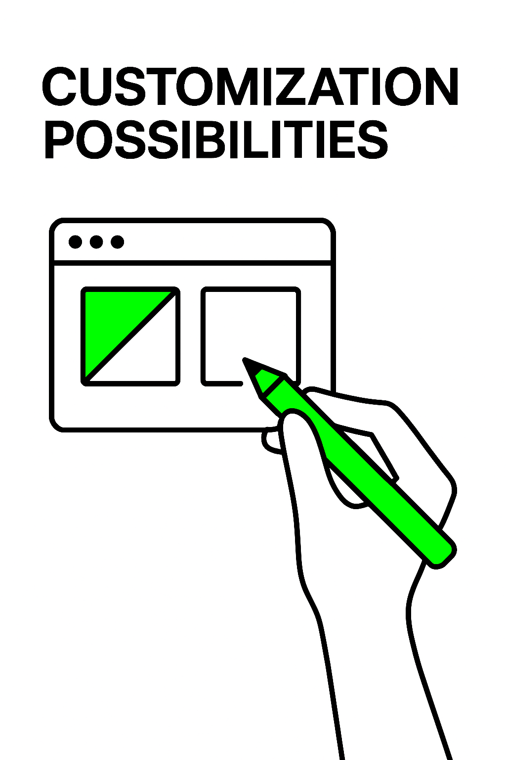 /Collection: /by davooda/Type: PNG/Minimalist graphic depicting a hand holding a pen over a digital interface, emphasizing customization possibilities. Ideal for tech or design-related content.