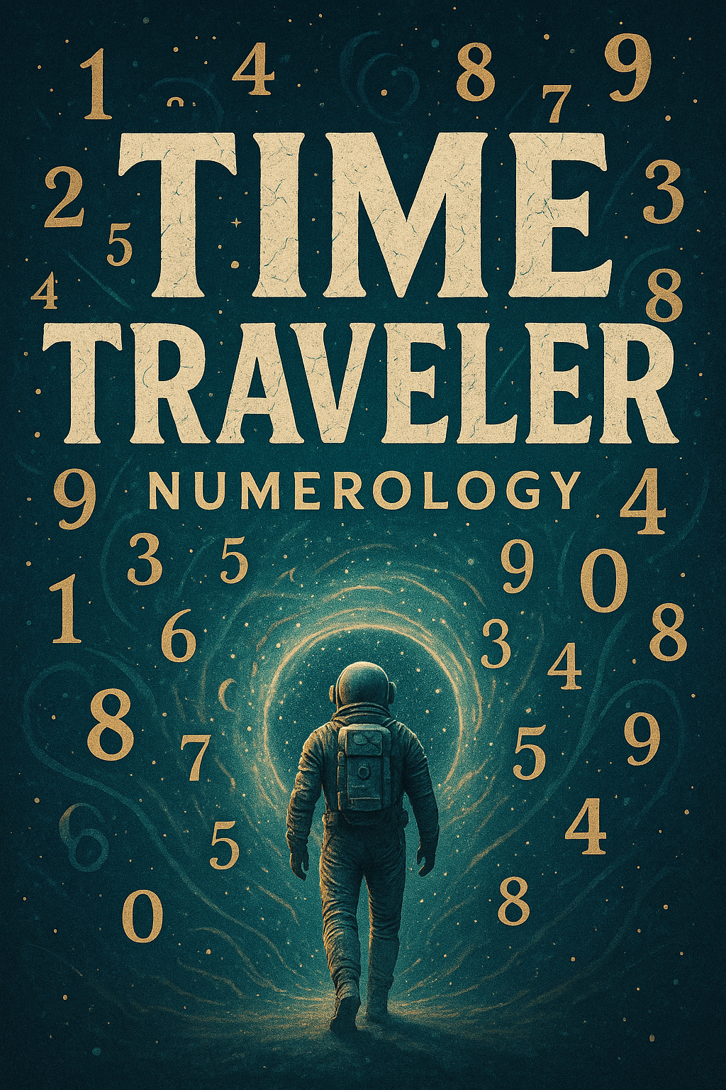 /Collection: /by davooda/Type: PNG/An imaginative graphic featuring an astronaut walking towards a swirling portal, surrounded by numerals, representing a blend of science fiction and numerology. Ideal for creative marketing or educational content.
