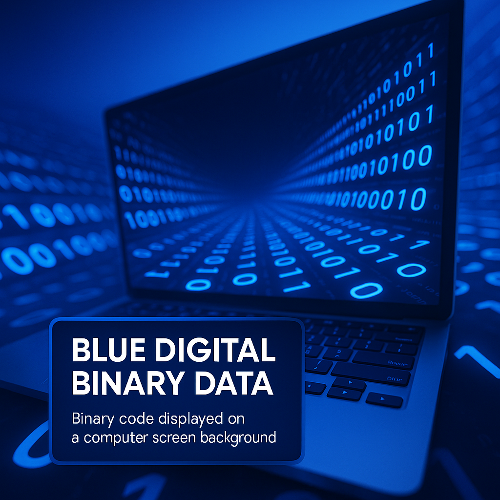 /Collection: /by davooda/Type: PNG/This image features a computer screen displaying blue binary code against a dark background. It is ideal for tech-related content, illustrating digital data themes.