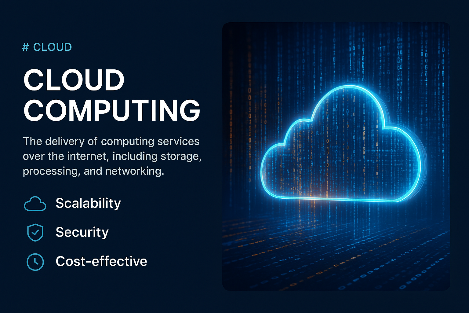 Modern Cloud Computing Concept Graphic with Neon Elements