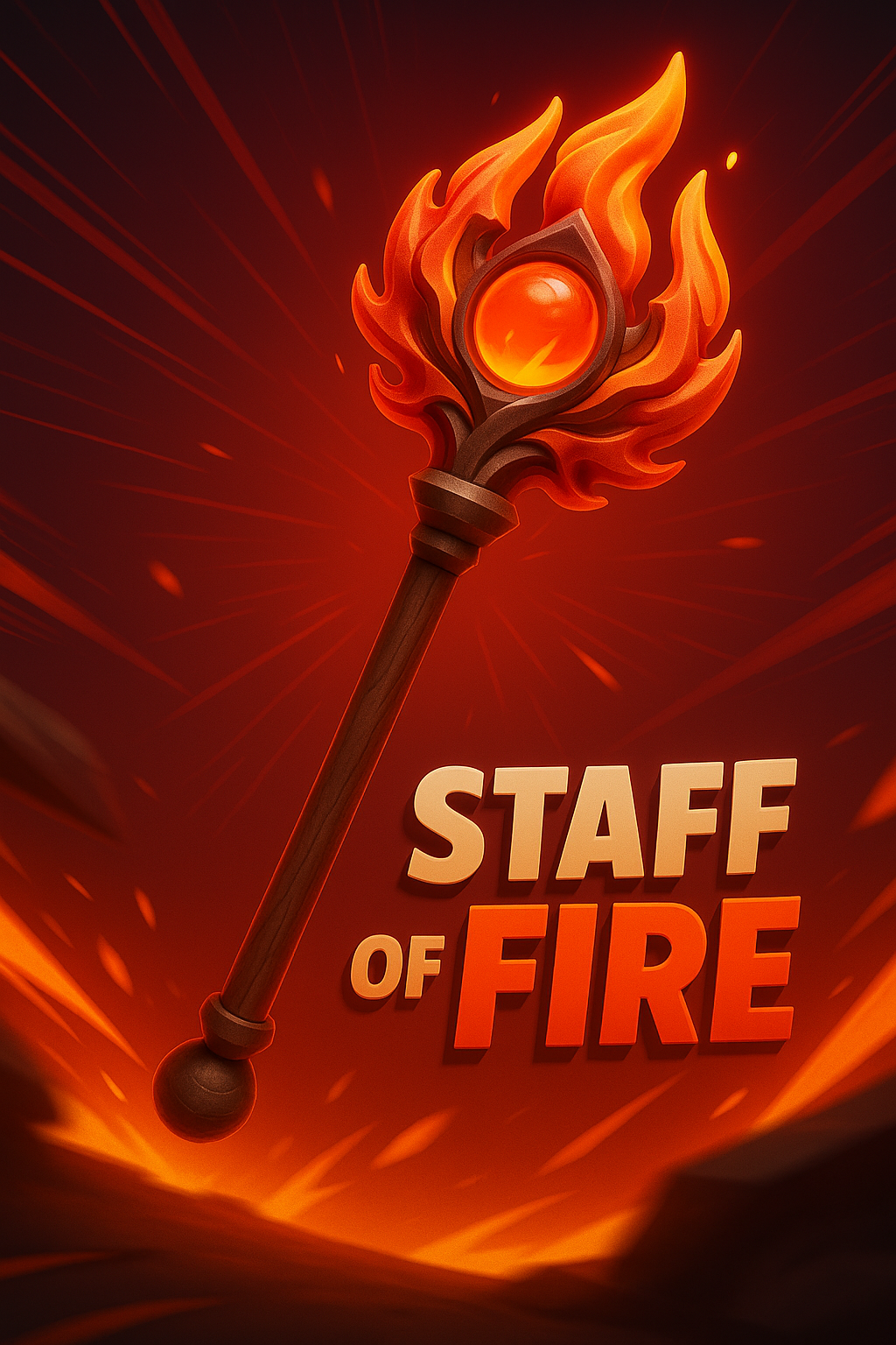 /Collection: /by davooda/Type: PNG/A striking illustration of a fiery staff, featuring dynamic flames and a glowing orb at the top. The design includes bold typography, emphasizing the word 'FIRE' against a gradient background.