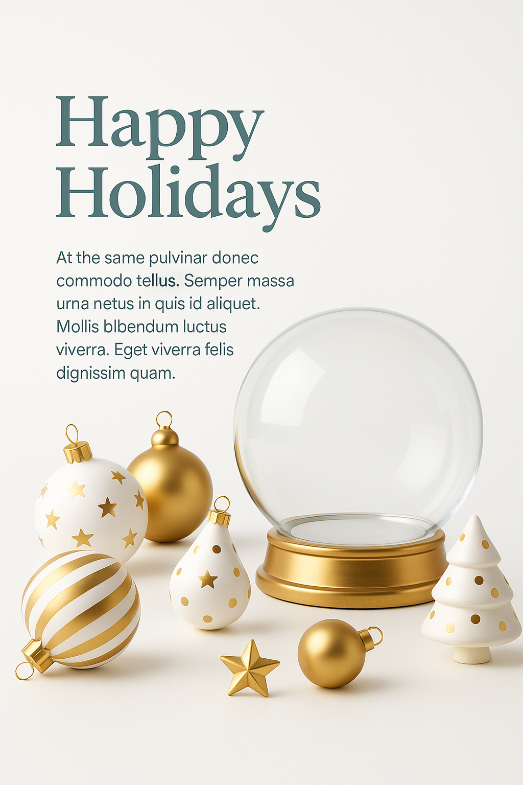 /Collection: /by davooda/Type: PNG/Festive image showcasing a variety of holiday ornaments and a snow globe, designed with a clean and modern aesthetic, perfect for seasonal marketing and greeting cards.