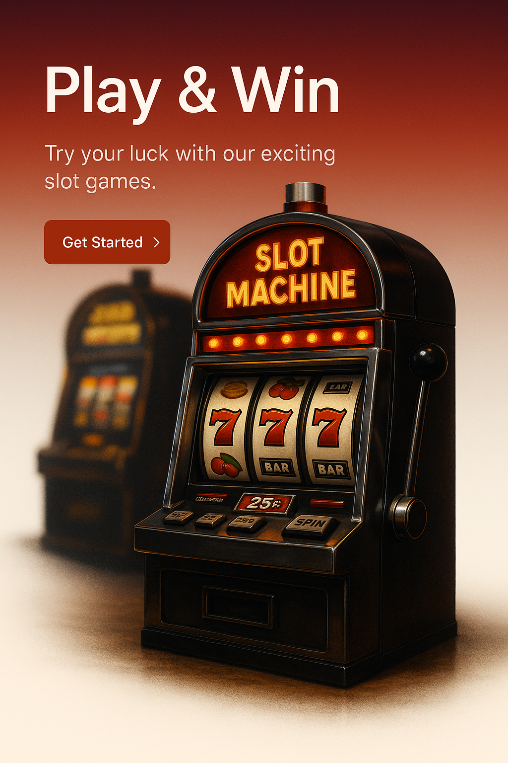 A visually appealing slot machine illustration featuring bright lights and classic symbols. Includes an action button inviting users to engage with the gaming experience.