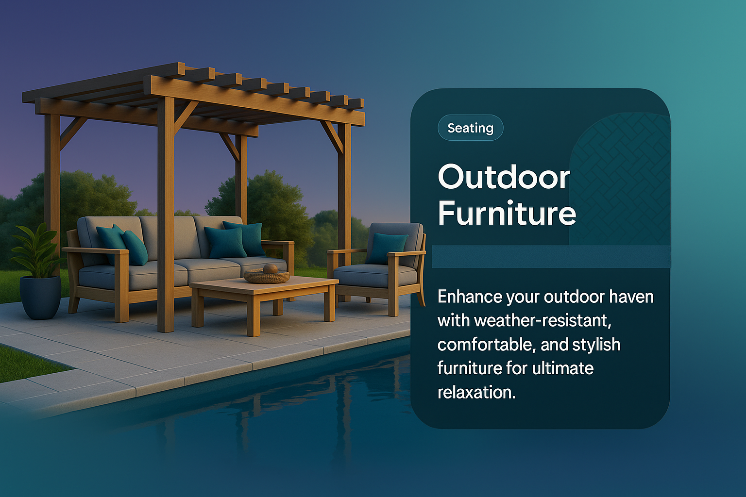 Stylish Outdoor Furniture by the Pool under a Pergola