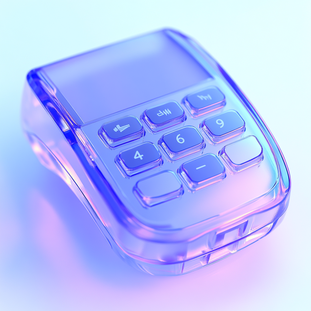 Stylized 3D rendering of a transparent calculator with a sleek design, featuring soft gradient lighting. Ideal for tech-related projects and digital interfaces.