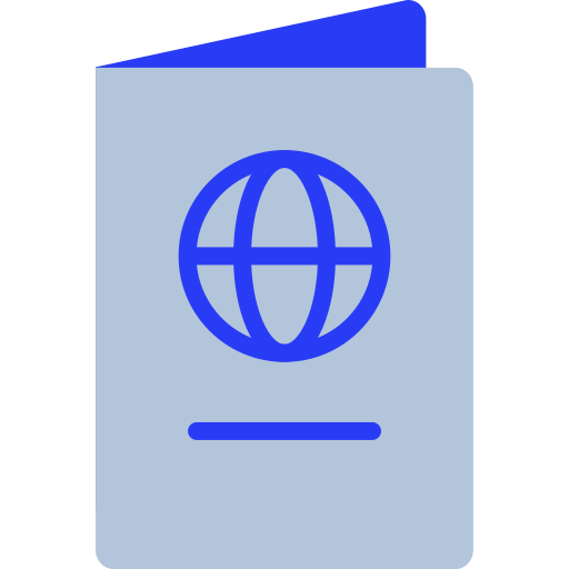 polish-blue simple icon: passport, travel, globe, identification, document