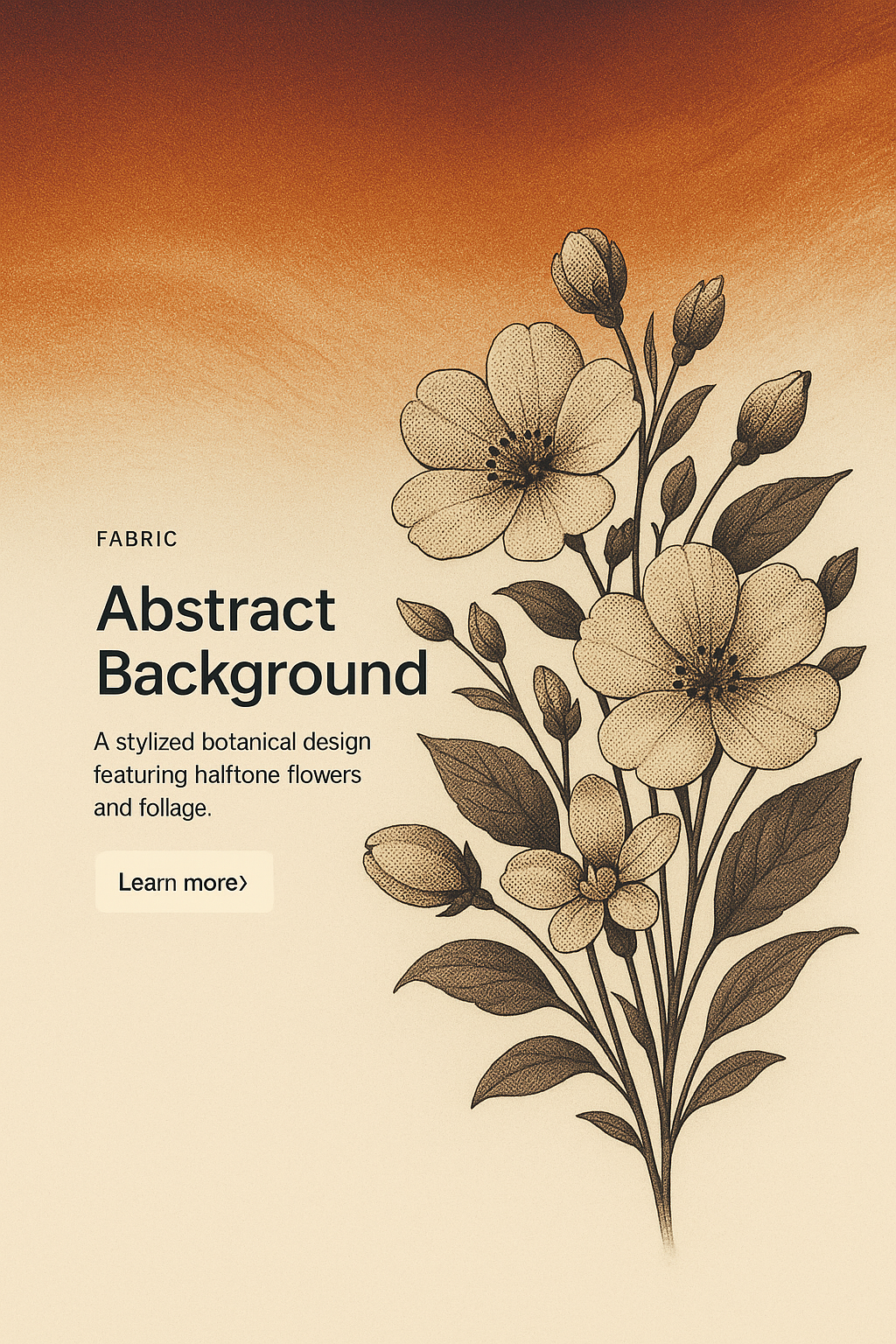 /Collection: /by davooda/Type: PNG/A refined botanical illustration featuring halftone flowers and foliage, set against a gradient backdrop that transitions from dark to light. Ideal for textile prints.