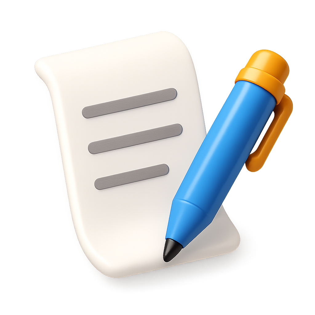 A 3D-rendered image of a paper sheet featuring three horizontal lines and a blue pen placed alongside it. The background has a soft gradient effect, enhancing the 3D feel.
