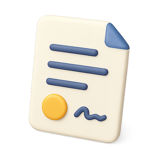 3D Icon of Document with Seal and Lines