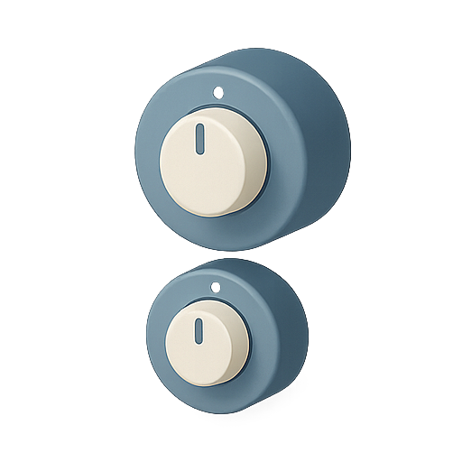 A contemporary image featuring two circular control knobs with a minimalist design, ideal for home decor or appliance interfaces. The soft color palette adds elegance, making it suitable for product showcases.