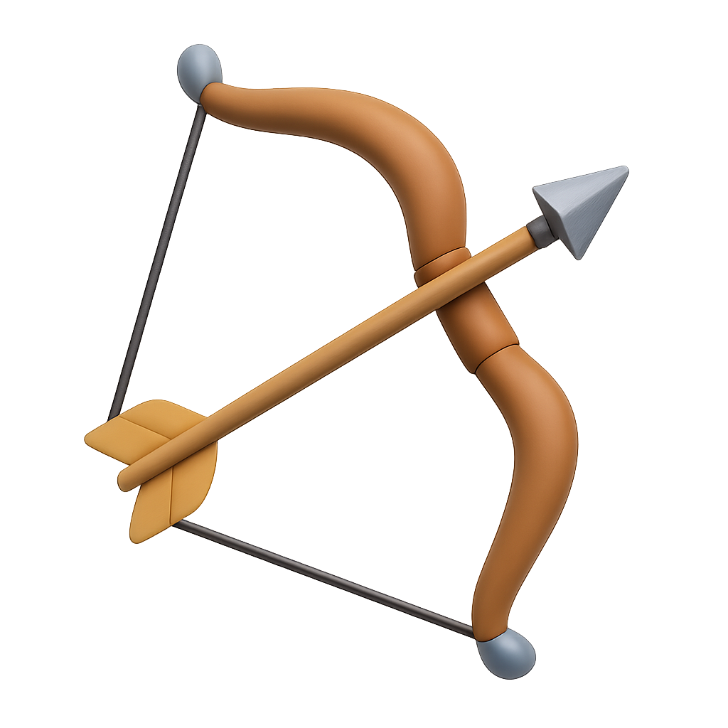 Stylized 3D Bow and Arrow Icon in Isometric View
