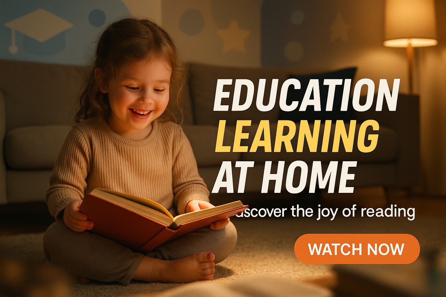 /Collection: /by davooda/Type: PNG/A vibrant social media post showcasing a young child reading at home, promoting the joy of education. The warm lighting and inviting atmosphere create a comforting vibe, ideal for educational initiatives.