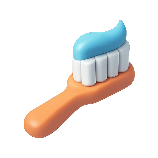 A playful 3D render of a toothbrush featuring a vibrant orange handle and blue toothpaste, ideal for dental product marketing or health-related content.