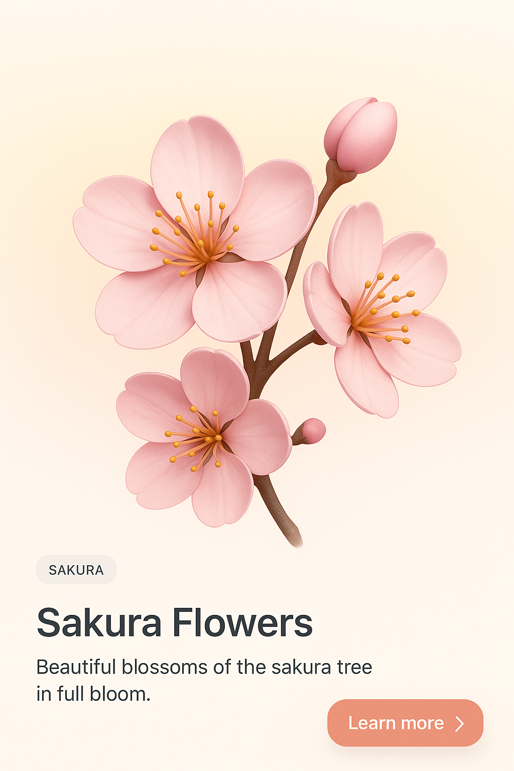 /Collection: /by davooda/Type: PNG/A beautiful 3D illustration of sakura flowers in full bloom against a soft gradient background. The design features a learn more button, enhancing user engagement.