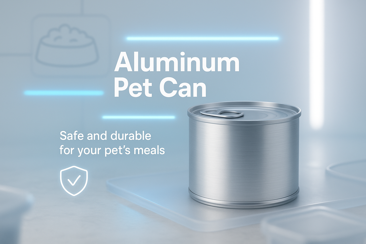 Sleek product mockup showcasing an aluminum pet can, featuring a minimalist design with a focus on safety and durability, ideal for pet food packaging concepts.