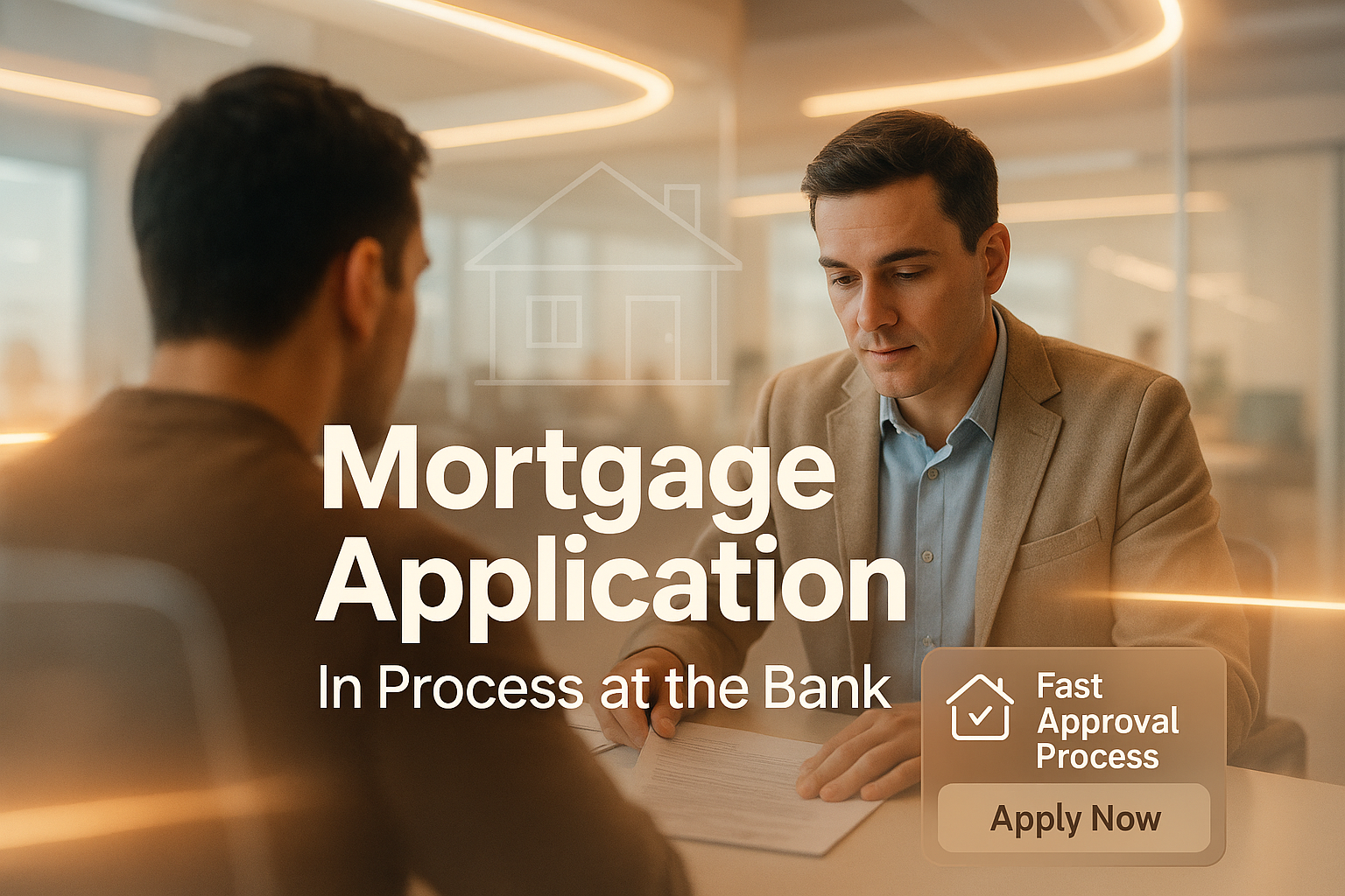 /Collection: /by davooda/Type: PNG/Professional banking image showcasing a mortgage application process, featuring a client and a bank representative in a modern office setting, ideal for financial services marketing.