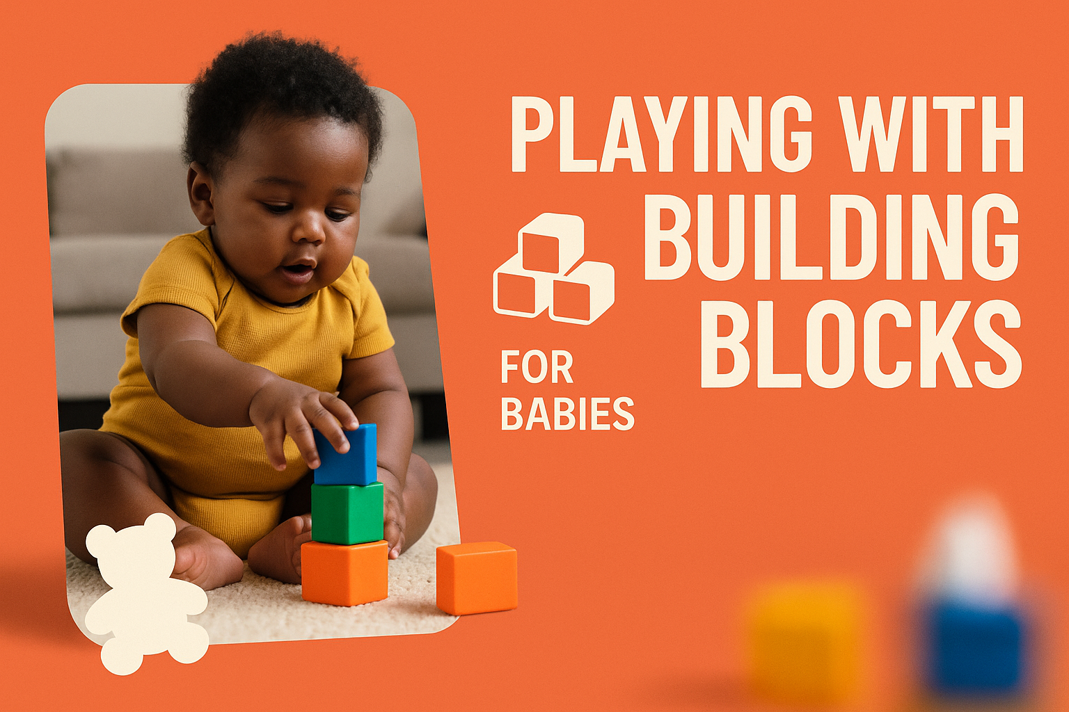 Vibrant social media post showcasing a baby playing with colorful building blocks, emphasizing developmental play. Ideal for parenting or educational content.