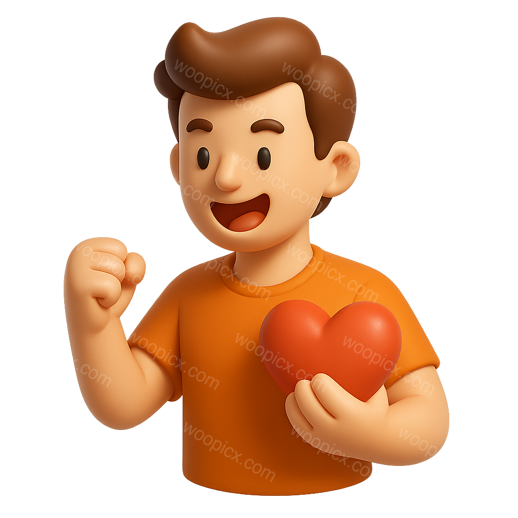/Premium/Collection: /by davooda/Type: PNG/A vibrant 3D icon depicting a cheerful enthusiast holding a heart, showcasing a playful design with a three-quarter view and a warm color palette, set against a soft gradient background.