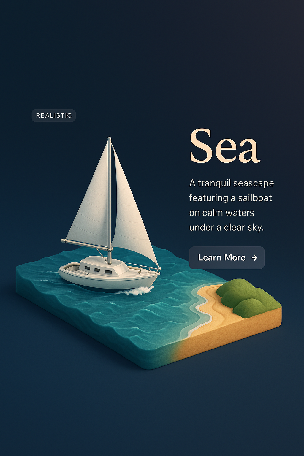 Tranquil Seascape with Sailboat in 3D Realistic Style