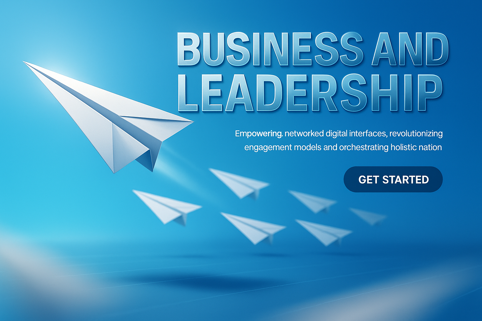 /Collection: /by davooda/Type: PNG/A dynamic digital graphic featuring paper airplanes symbolizing business leadership. It is styled with a modern, clean design suitable for business presentations or online platforms.