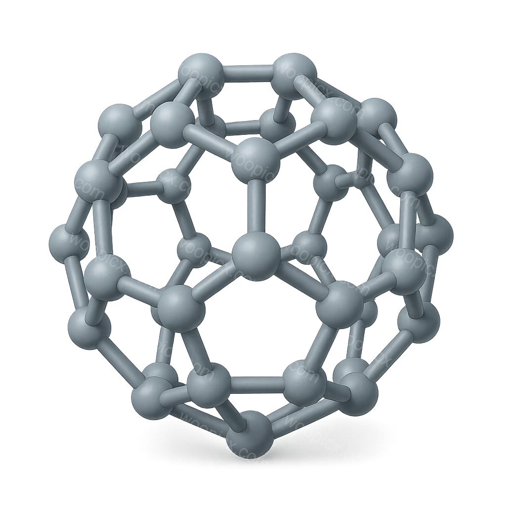 A three-dimensional representation of a buckyball, showcasing its spherical structure with interconnected nodes and bonds, rendered in a gray palette against a subtle gradient background.