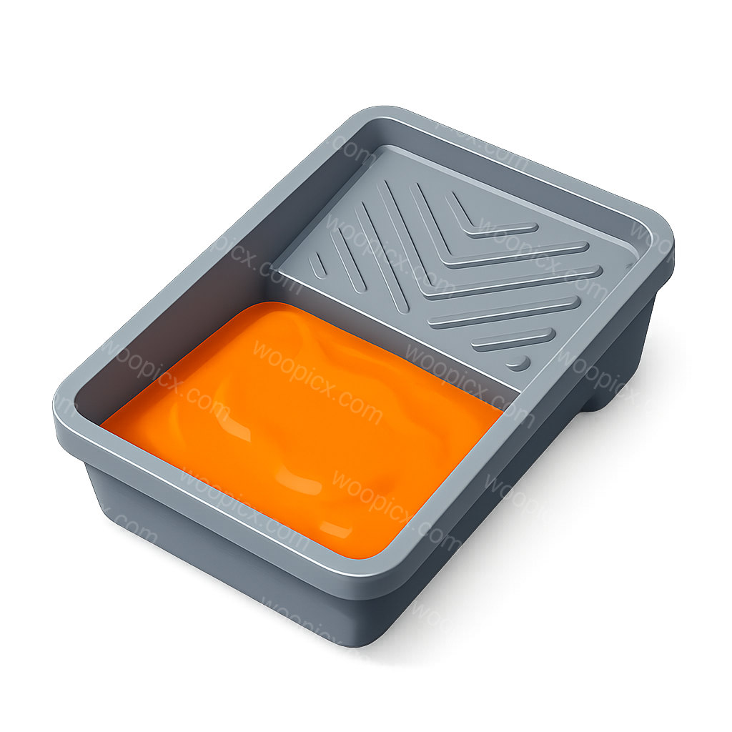 /Premium/Collection: /by davooda/Type: PNG/A visually appealing 3D icon of a paint tray featuring vibrant orange paint. The tray is presented in a three-quarter isometric view, showcasing its depth and design.