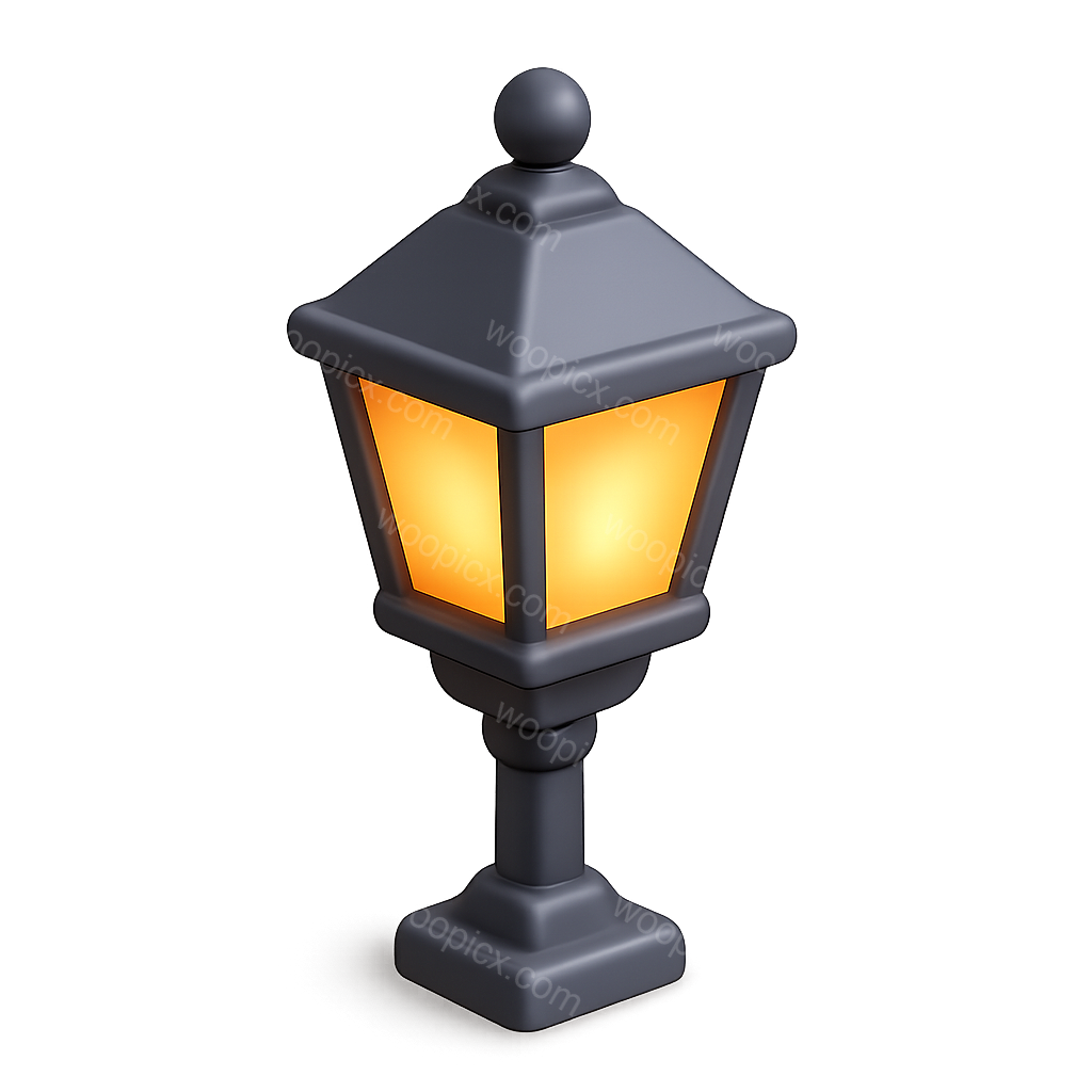 /Premium/Collection: /by davooda/Type: PNG/A sleek 3D street lamp icon featuring a transparent background. The lamp's design showcases a three-quarter view with a warm glowing light emanating from its glass panels, emphasizing an isometric and volumetric style.