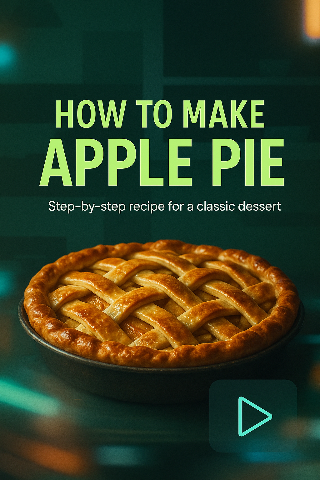Engaging video thumbnail designed for a cooking tutorial, featuring a beautifully baked apple pie with a woven crust. Ideal for attracting viewers interested in culinary skills and dessert recipes.
