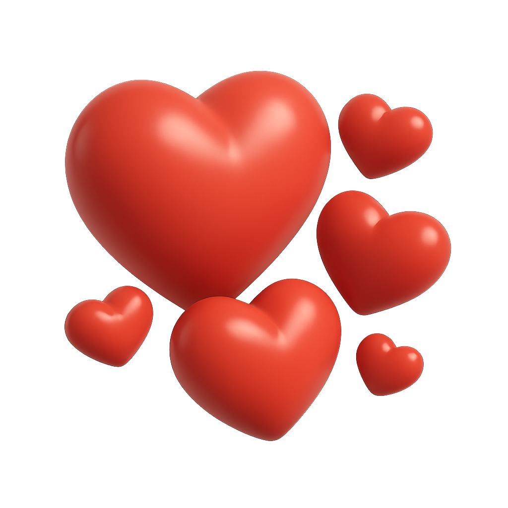 3D Heart Symbols in Dynamic Motion for Dating App Visuals